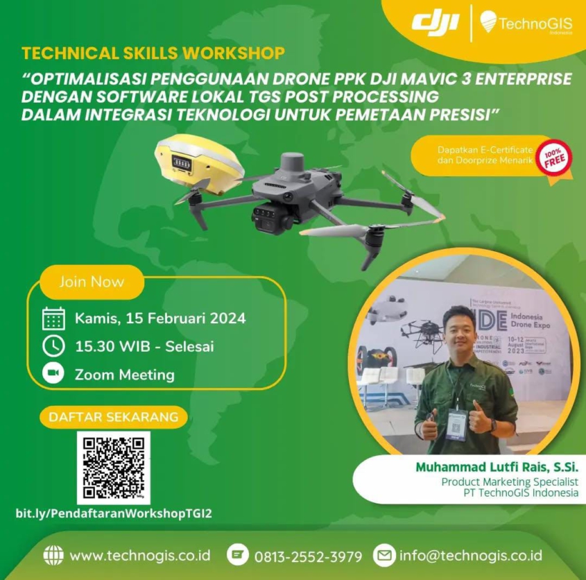 Webinar ini membahas pemanfaatan maksimal drone PPK DJI Mavic 3 Enterprise yang terintegrasi dengan software lokal TGS Post Processing. Peserta akan mempelajari bagaimana alur kerja pemetaan presisi berbasis PPK dipadukan dengan pengolahan data menggunakan software lokal, sehingga menghasilkan data spasial berakurasi tinggi, efisien, dan sesuai kebutuhan survei di berbagai bidang.