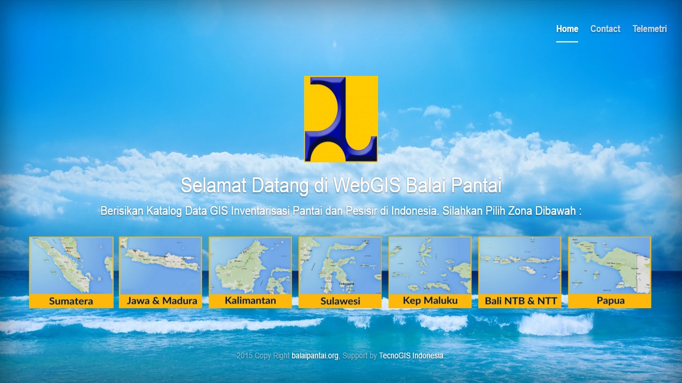 Pembuatan WebGIS Balai Pantai Kementrian Pekerjaan Umum – Pada tahun 2016 TechnoGIS Indonesia bekerja sama dengan Balai Pantai , Buleleng dalam pengembangan WebGIS untuk publikasi data spasial pesisir seluruh indonesia. fitur yang ditambahkan adalah melampirkan dokumen pdf eksternal hasil survey data sebelumnya. webgis ini menggunakan 100% opensource dengan kelebihan memudahkan admin maupun user dalam pengembangan dan pemanfaatan webgis.