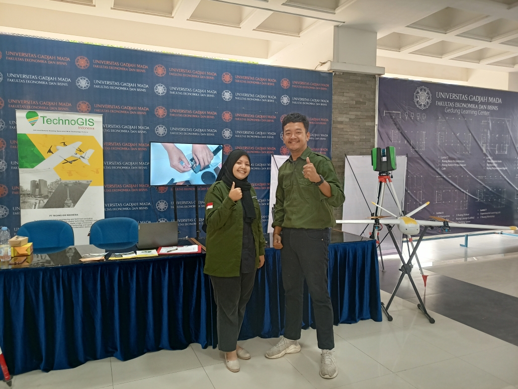Berbagai macam teknologi buatan TechnoGIS Indonesia dipamerkan dengan sangat apik di sana. Mulai dari produk TGS GNSS EQ1 RTK yang menjadi metode terbaik digunakan dalam medan yang sulit, UAV NIVO Long Range V2 yang sangat inovatif dan dapat dimanfaatkan dalam segala lahan termasuk dalam mempersiapkan lahan perkebunan, Blue Marine Echosounder Batimetry, GeoLiDAR TLS – Terestrial Laser Scanner yang lebih unggul dibandingkan penggunaan foto udara dan juga produk Landcam LC-4 Spectra Camera Multispectral. Program GIS yang dapat dimanfaatkan untuk berbagai bidang juga berhasil dimanfaatkan oleh TechnoGIS agar mudah diakses oleh masyarakat melalui diciptakannya aplikasi GIS Survey Mobile yang dapat diakses melalui Android secara gratis. Perwakilan dari TechnoGIS Indonesia, Muh. Lutfi dan Listyana, juga memperkenalkan inovasi teknologi geospasial terbaru dengan baik kepada para mahasiswa.
