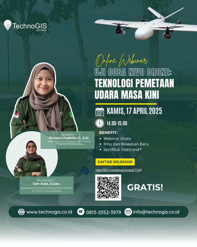 Webinar ini akan membahas inovasi terbaru dalam penggunaan nivo drone untuk pemetaan dan analisis spasial. Peserta akan mendapatkan wawasan tentang cara kerja, keunggulan, serta melihat demo penggunaan drone dan pemanfaatannya dalam berbagai aplikasi, seperti survei topografi, pemantauan lingkungan, dan perencanaan wilayah.